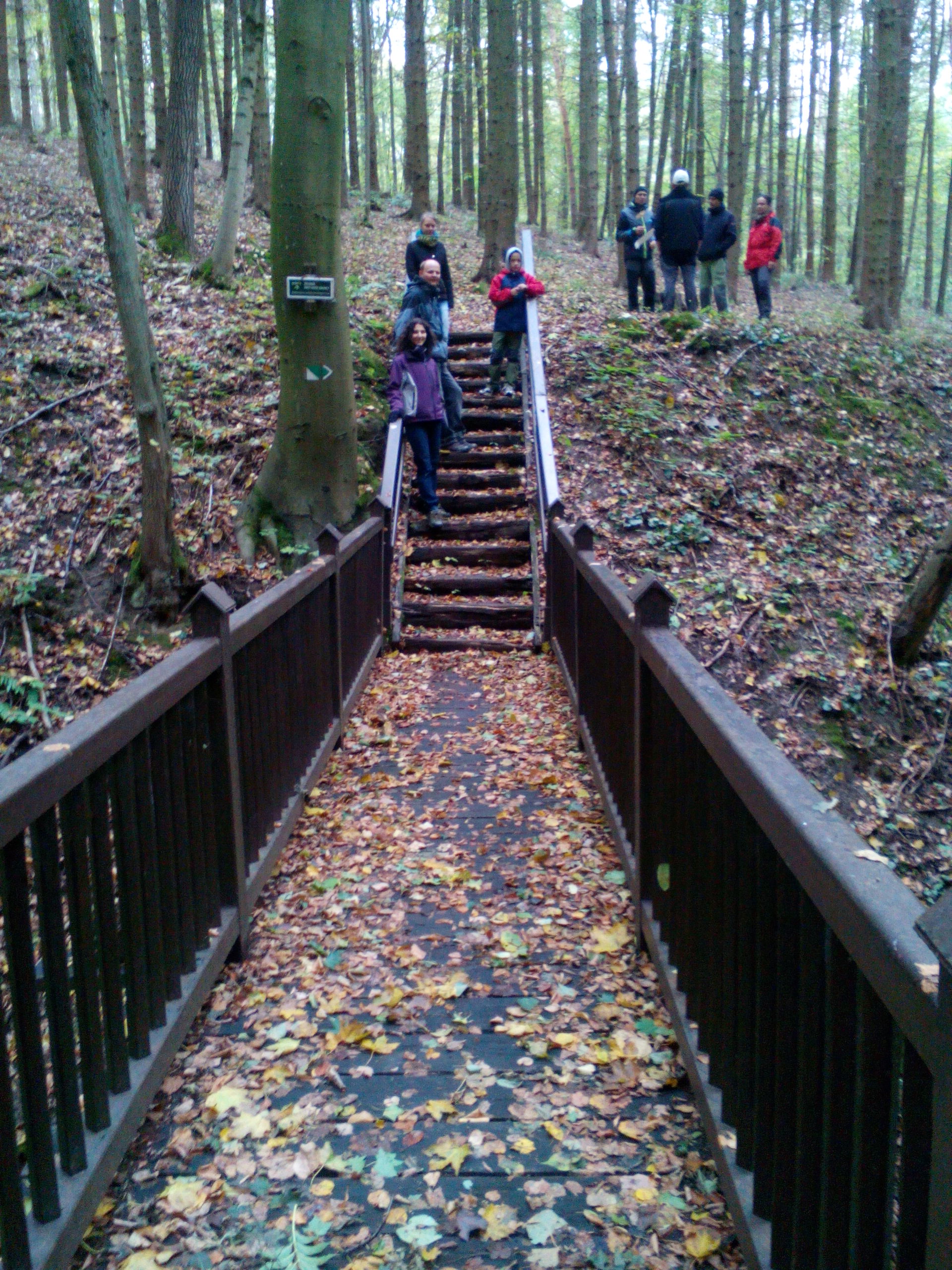Po výborném obědě(vařila s. Marina) jsme se vydali mírným kopcem na zámek. Tam nás čekala krásná vyhlídka na město utopené v zeleni, s protékající řekou. Zpět jsme se vraceli dvěma trasami, jak si kdo vybral. Les krásně zbarvený podzimními barvami nás odměnil za mírnou námahu…