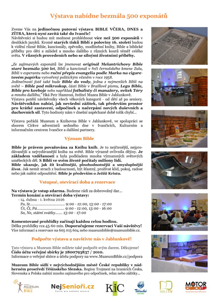 Výstava Bible v Ivančicích! 14. dubna – 1. května 2026
